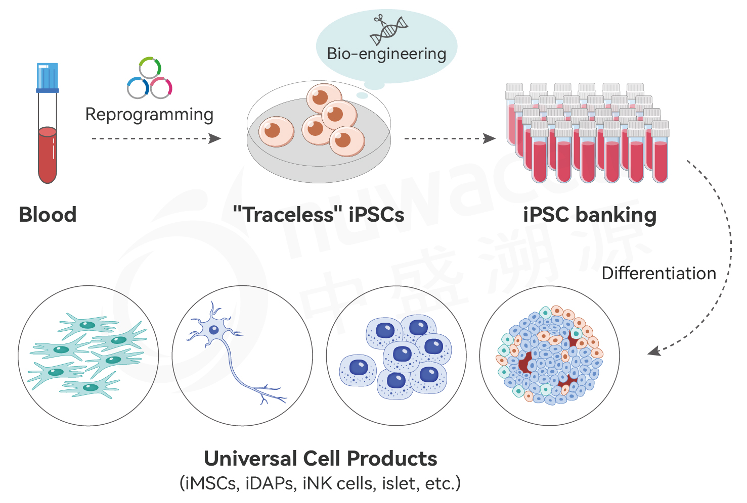 人工多能性幹細胞(iPSC)は、遺伝子工学的改変と無限増幅の能力を備えており、汎用型の既製品式