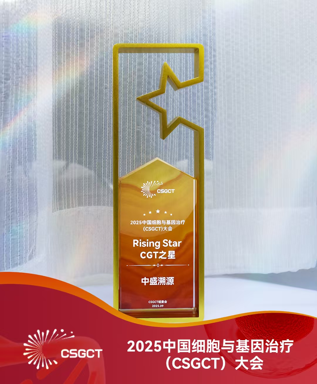 中国细胞与基因治疗大会(CSGCT)是国内细胞与基因治疗领域的权威学术会议之一,其设立的 “Rising Star” 奖项旨在表彰在细胞与基因治疗领域展现出显著创新力和发展潜力的企业或机构。